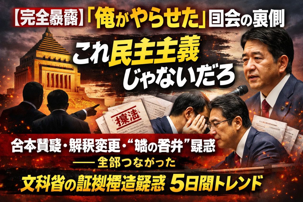 【衝撃】“全部バレた”情報戦敗北の正体——なぜ解散命令派の媚中勢力は嫌われたのか?若者支持0%と文科省陳述書疑惑「4日連続トレンド」の意味 -