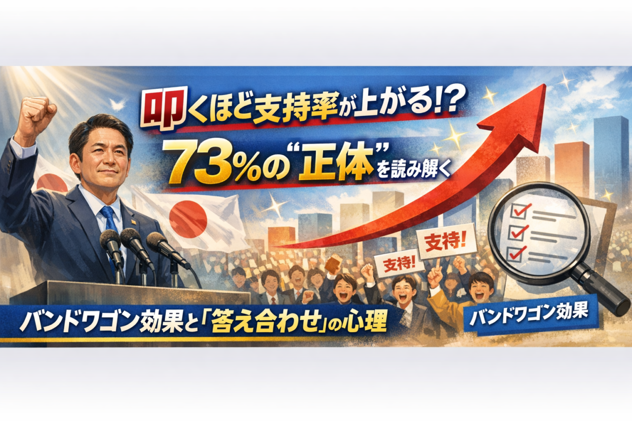 【逆転現象】叩くほど支持率が上がる?73%の“正体”を読み解く|バンドワゴン効果と「答え合わせ」の心理 -