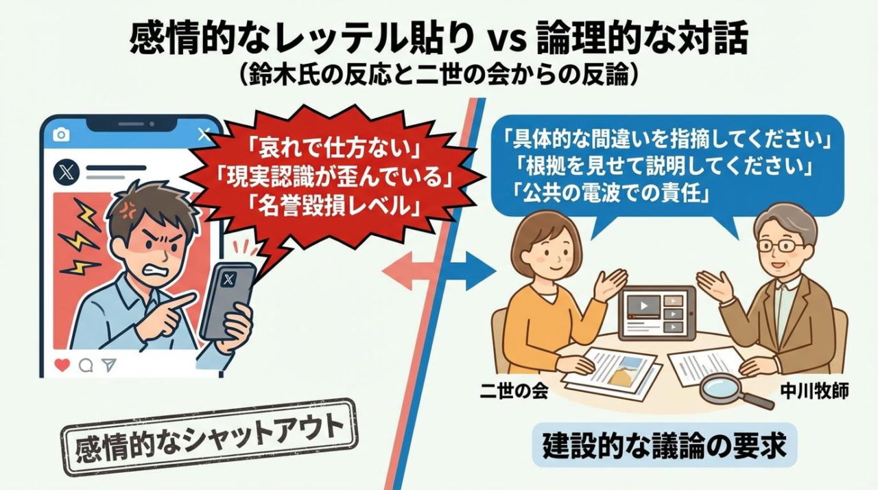 この二世の会の動画が公開された後、鈴木エイト氏は自身のX(旧Twitter)で以下のように反発しました。