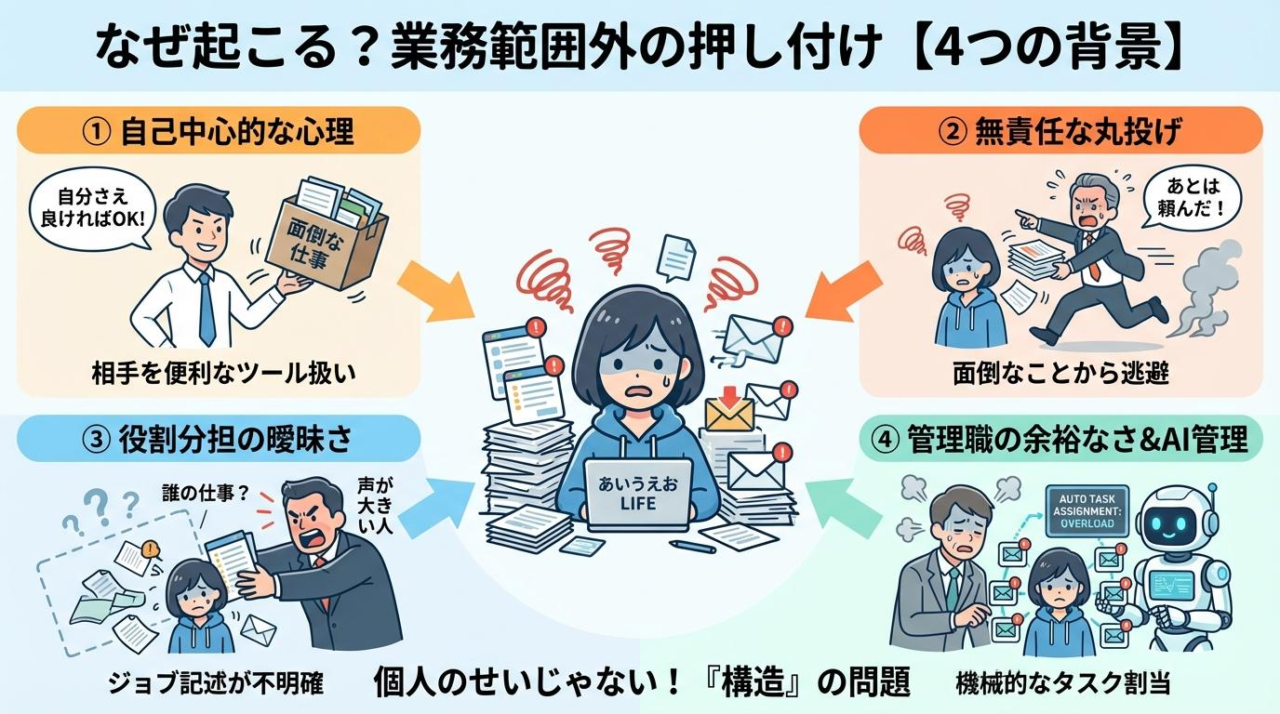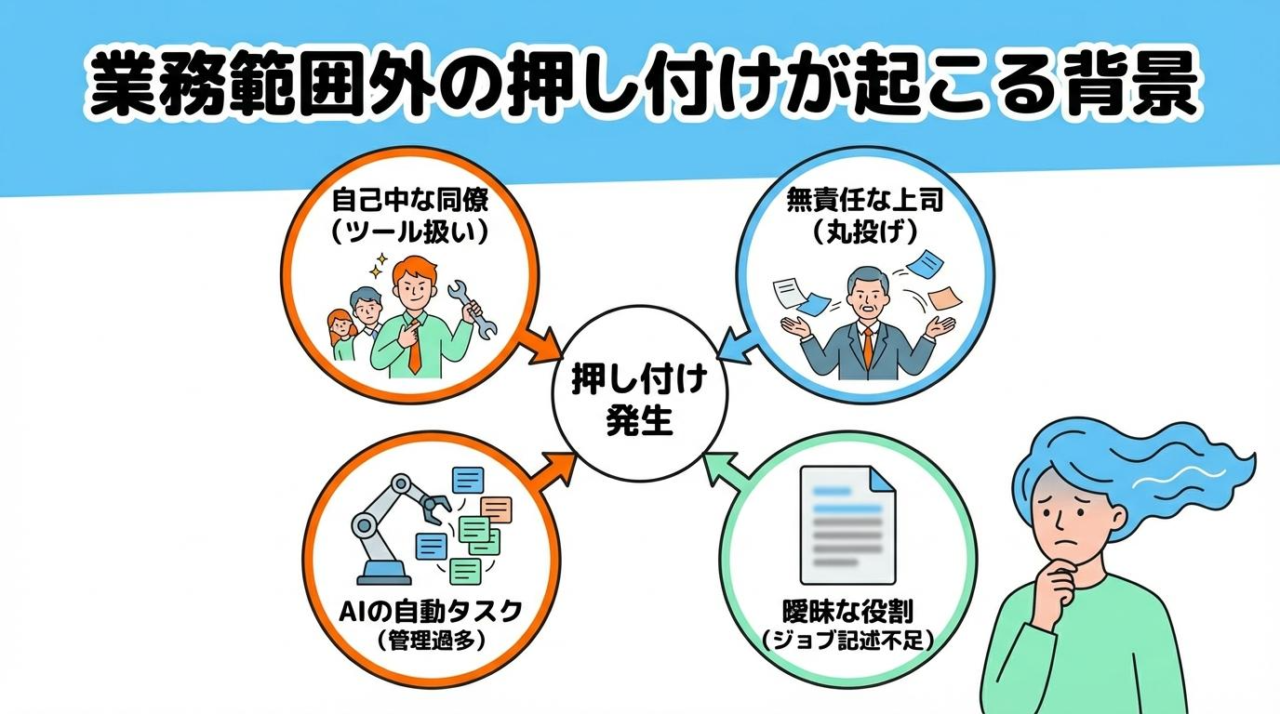 業務範囲外の仕事を押し付けられるのって、本当にストレスですよね。