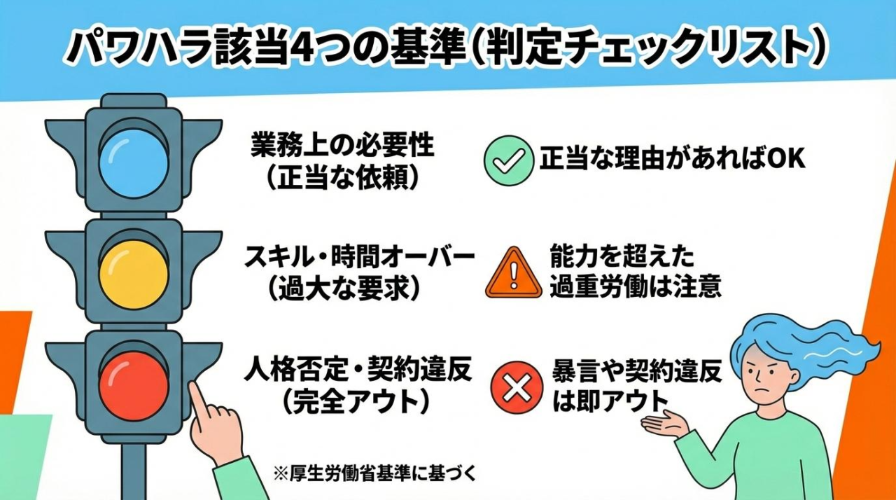 度を越えた仕事の押し付けがパワハラ(過大な要求)に該当しないか、厚生労働省の「あかるい職場応援団」で確認してみましょう。実際の裁判例や具体的なケースが豊富に掲載されているため、自分の状況を客観的に判断し、適切な相談先を見つけるための実用的な指標になります。