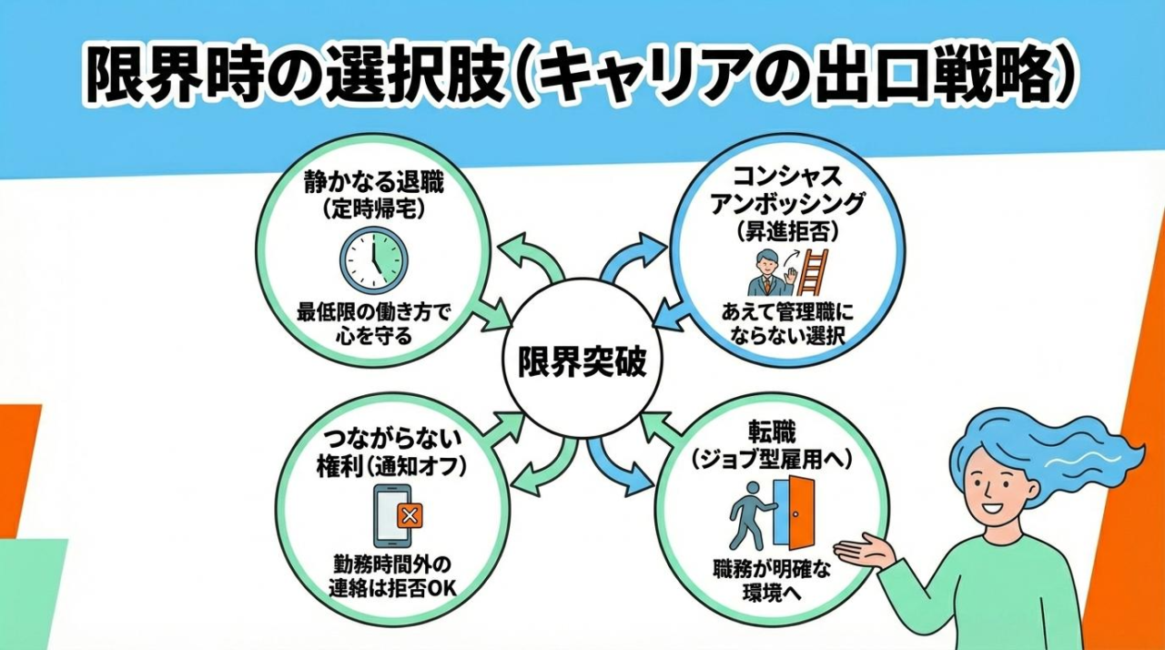もし今の職場で改善が見込めないなら、自分の身を守るために「戦わない選択」をすることも大切です。