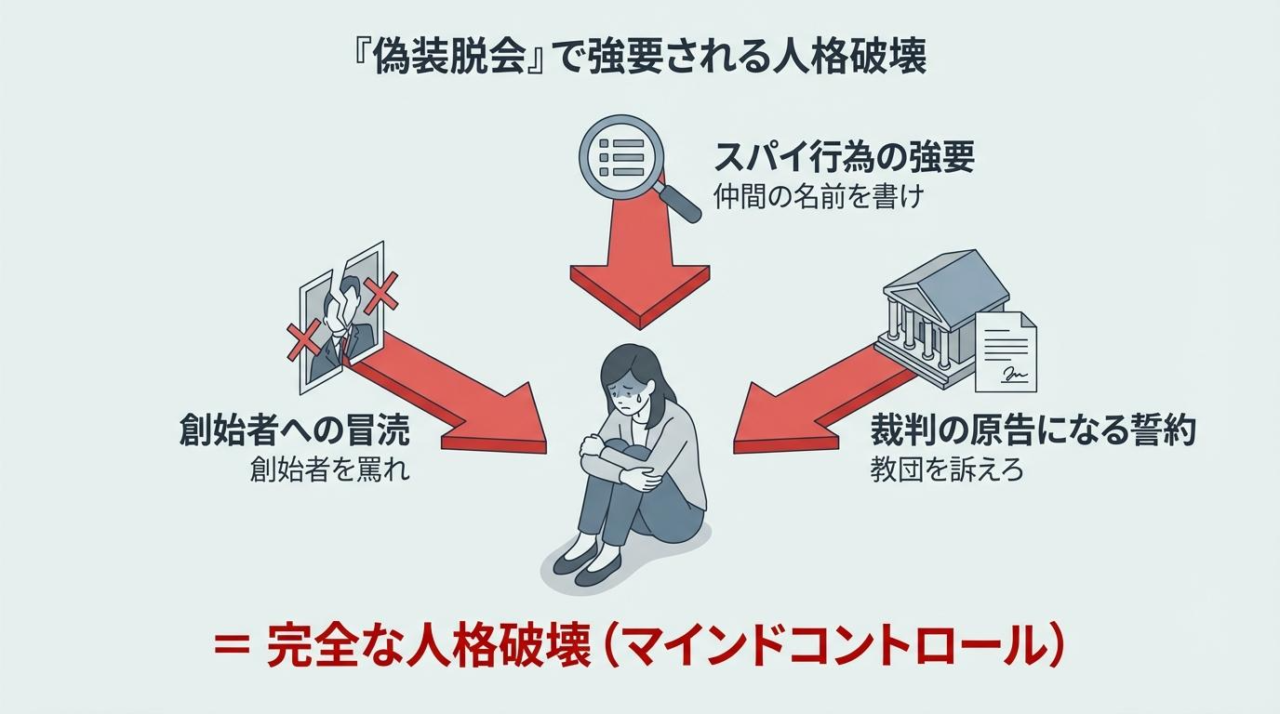 被害者たちが選ばざるを得ない最後の手段、それが「偽装脱会(ぎそうだっかい)」です。
