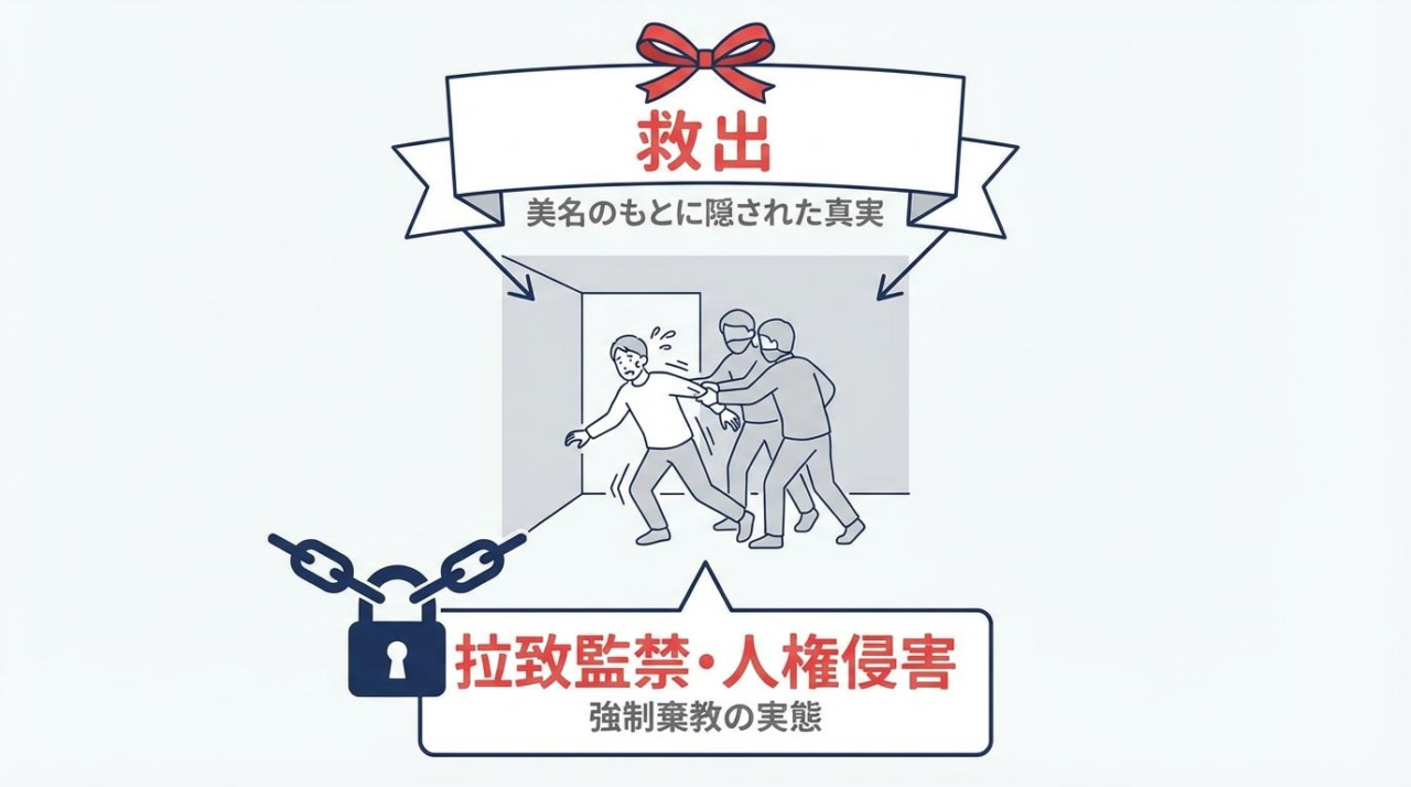 • 拉致監禁という深刻な犯罪が「救出」という美名のもとに長年放置されている事実。