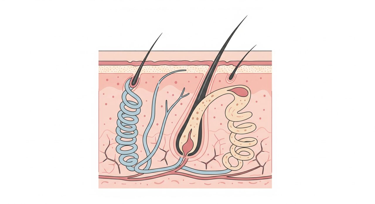 私たちの皮膚には「エクリン汗腺」と「アポクリン汗腺」という2種類の汗腺が全身に分布しています。