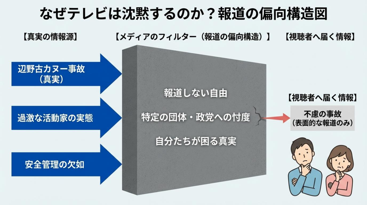 特定の団体や、左派的な活動家が絡む事件・事故になると、メディアは途端に口をつぐんでしまう。この事故の裏には、触れてはいけない「何か」があることを、視聴者も感じ取っているのです。
