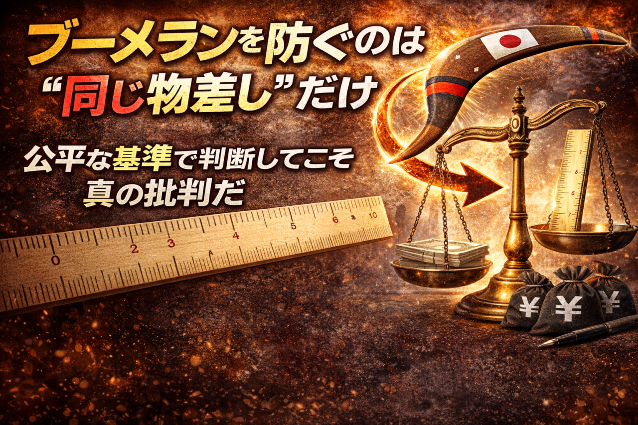 最近よく見かける「ズブズブ判定(=関係があったらアウト)」という物差し。これ、相手が誰でも同じように当てはめないと、ただのダブルスタンダード(ご都合主義)になります。